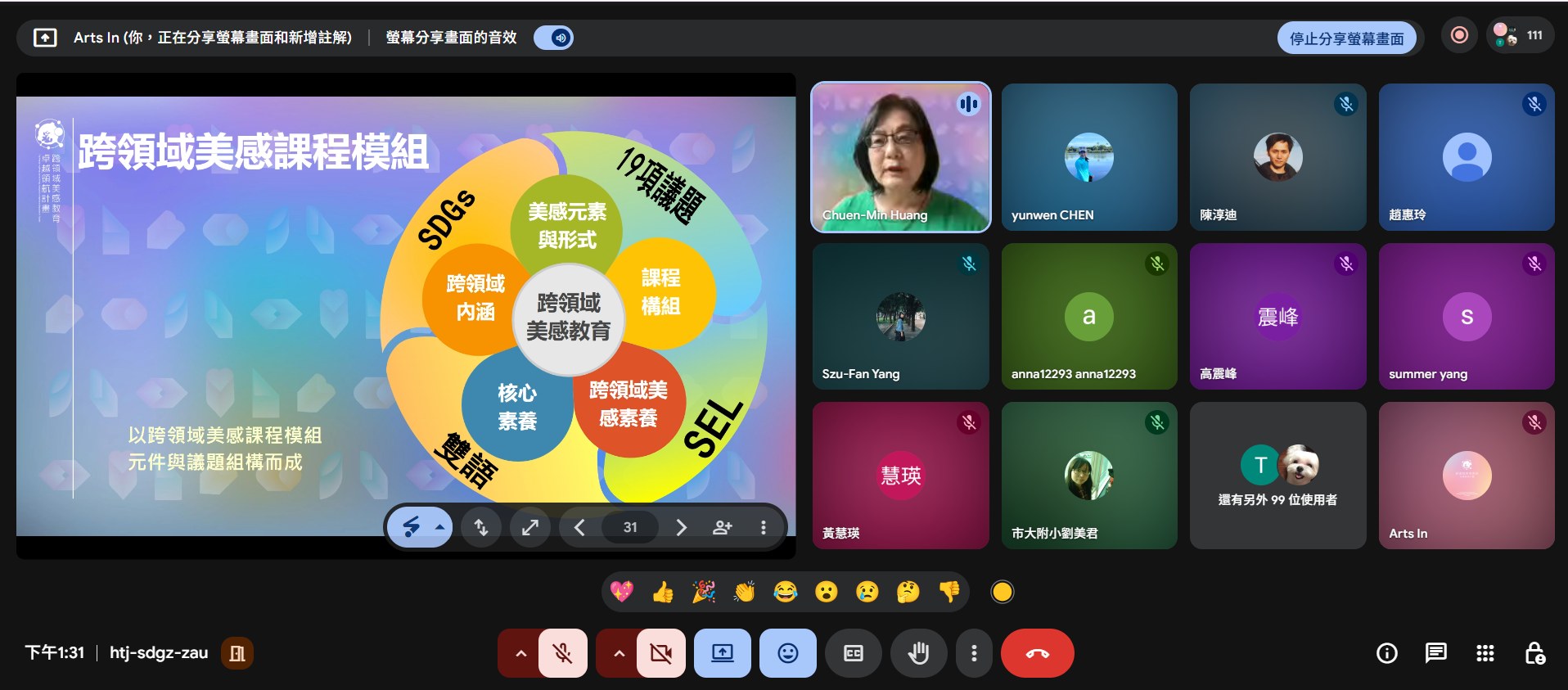 Gathering Vocational High Schools, Junior High Schools and Elementary Schools to participate in the Interdisciplinary Curriculum of Aesthetic Education, including the Art Field: Visual Arts, Music and Performing Arts, and Other Fields: Language Arts, Social Studies, Integrative Activities, Mathematics, Health and Physical Education, Science and Technology, to share ideas and creativities.
